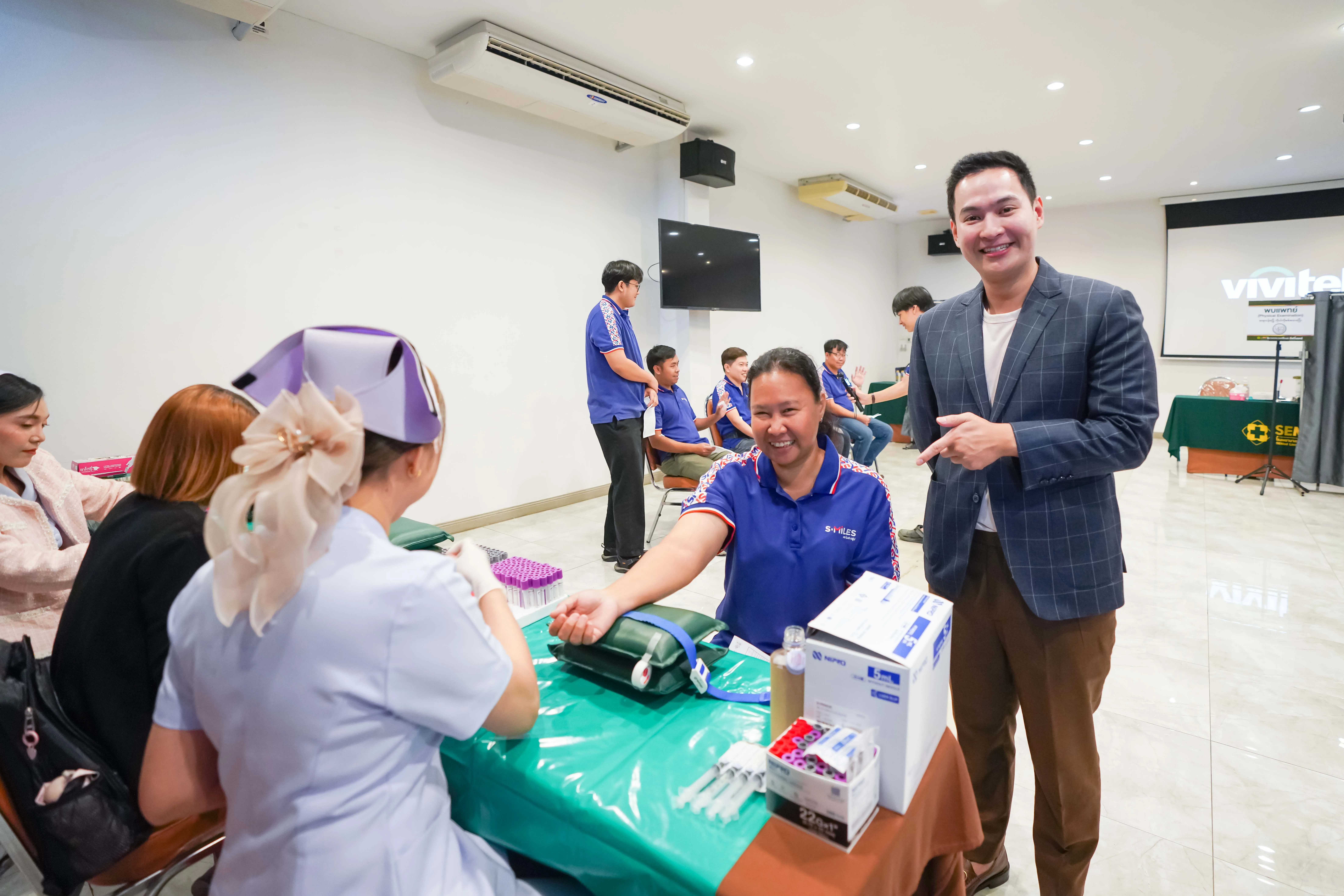 นำทีมโดย คุณธง เมธากุล สุวรรณบุตร กรรมการผู้จัดการ ลงพื้นด้วยตนเอง เพื่อส่งมอบกำลังใจในทุกการตรวจสุขภาพของพนักงานทุกคนในเครือ พร้อมถ่ายรูปที่ระลึกกับพนักงานทุกคนอย่างอบอุ่นและเป็นกันเอง รวมถึงยังมีขนมและนมแจกพนักงานก่อนกลับไปปฎิบัติงานต่อในช่วงบ่าย
